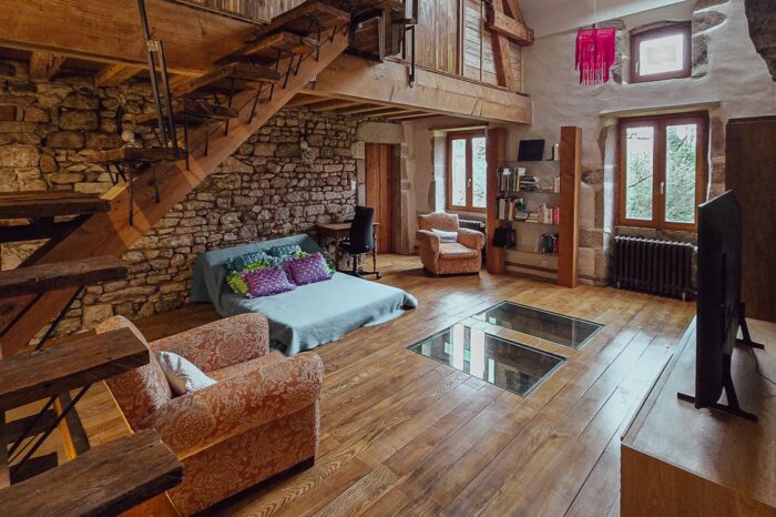 Ce logement contemporain et chaleureux, doté d’un chauffage écologique au bois, peut accueillir jusqu’à quatre personnes. Il dispose de deux chambres confortables et de deux salles de bains, offrant à chacun espace et intimité.